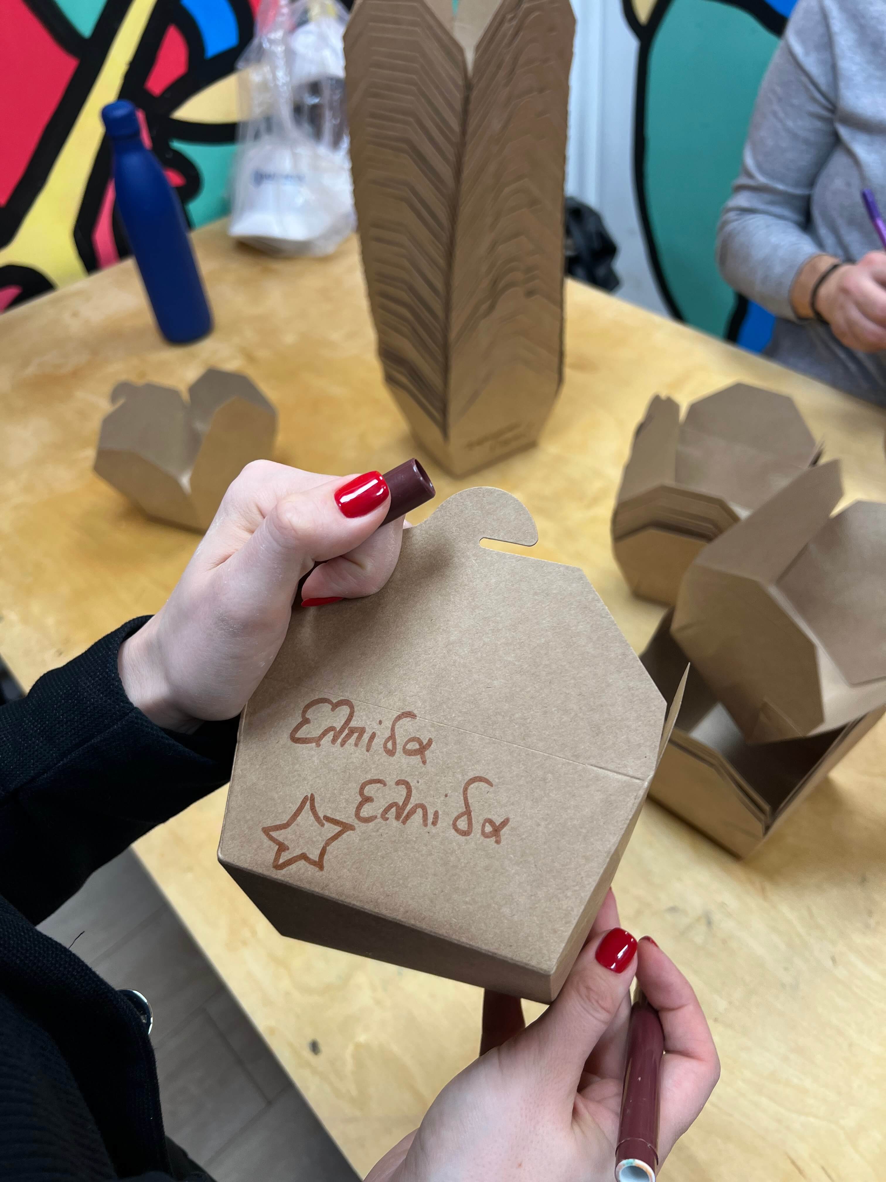 Παράλληλα, η ομάδα μας προχώρησε και στη δημιουργία χειροποίητων κατασκευών με μηνύματα στήριξης, αισιοδοξίας και αγάπης, τα οποία μοιράστηκαν στους συνανθρώπους μας, ως μια μικρή αλλά ουσιαστική υπενθύμιση ότι δεν είναι μόνοι.